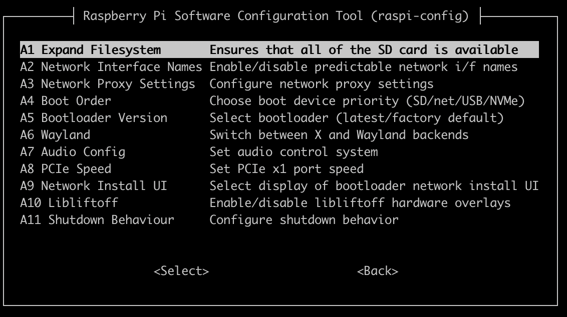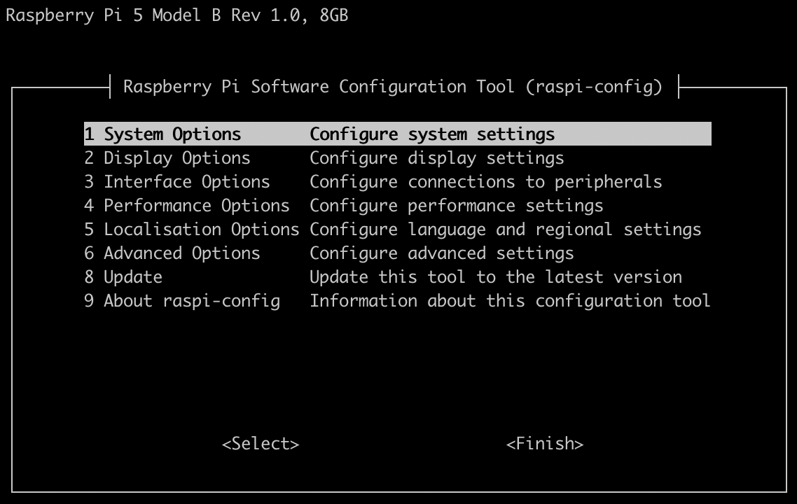 sudo raspi-configand it might look something like: